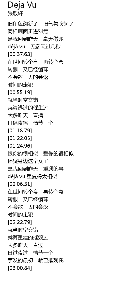 | [00:31.65] | dé jà vu wú duān shǎn guò jǐ miǎo |