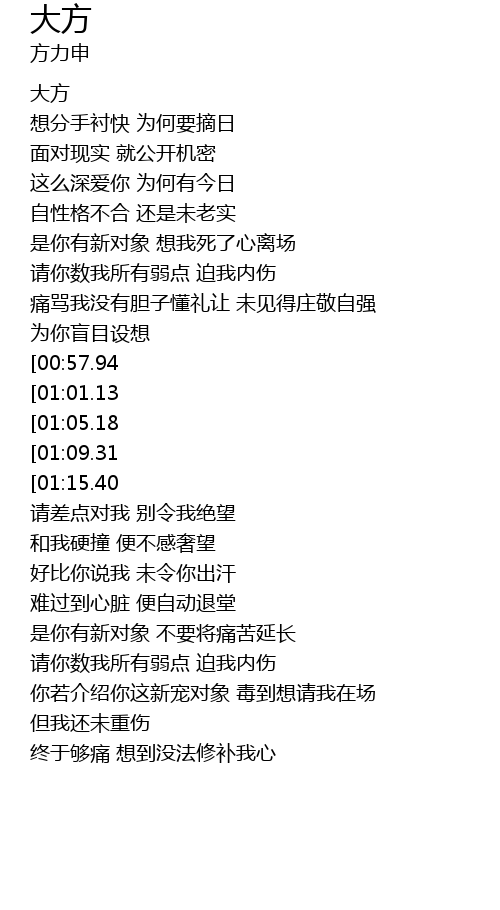 | [02:30.68][01:09.31] | 还不算尽 可以讲我大方得体其实最蠢 |