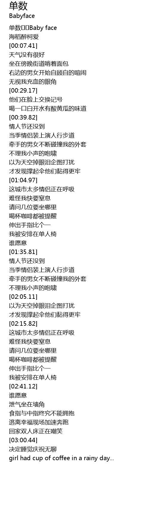 | [00:02.13] | 单数��Baby face |