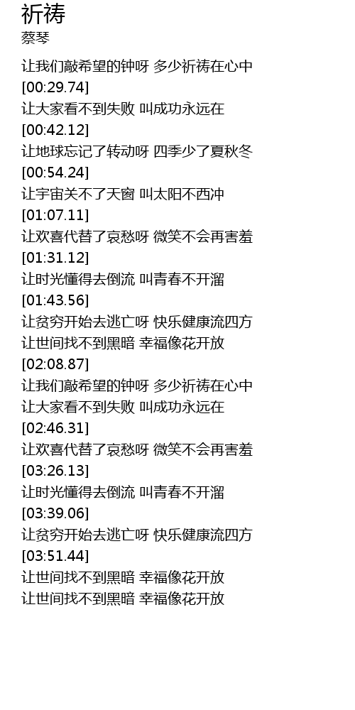 | [04:04.26] | 让世间找不到黑暗 幸福像花开放 |