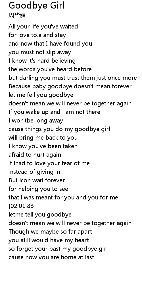 Goodbye Girl Lyrics
