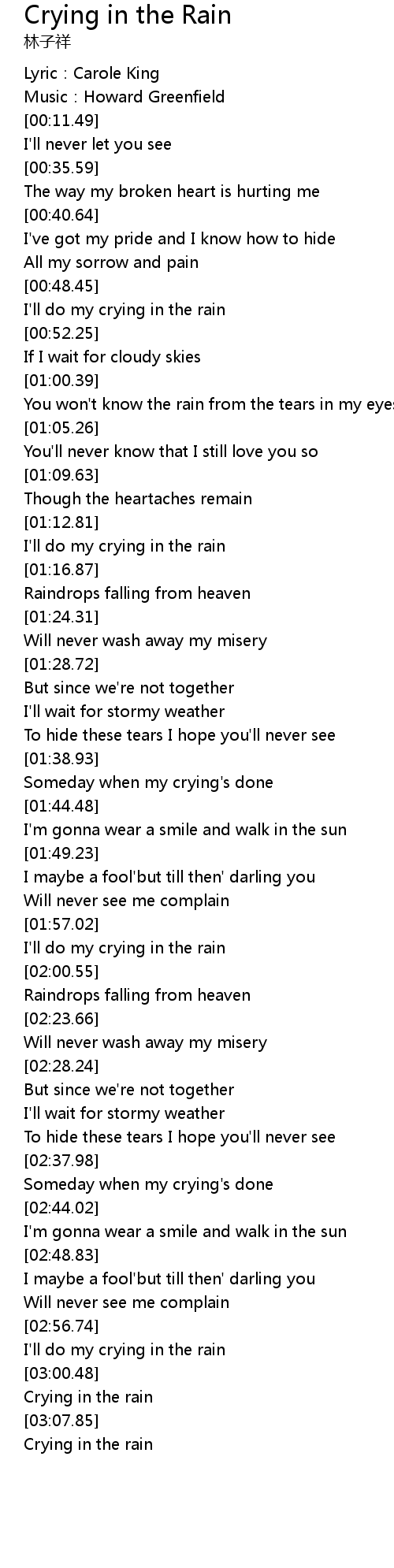 | [01:01.27] | You won' t know the rain from the tears in my eyes |