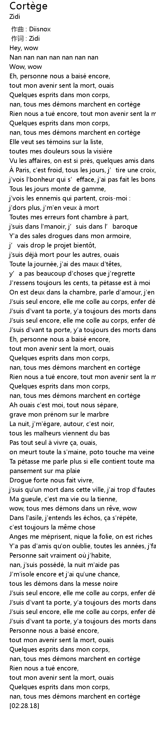 [02:19.34] nan, tous mes dé mons marchent en cortè ge