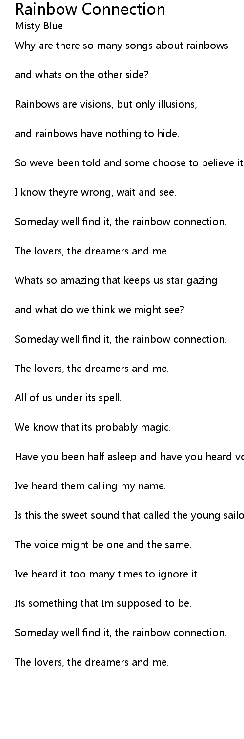 Someday well find it, the rainbow connection. |