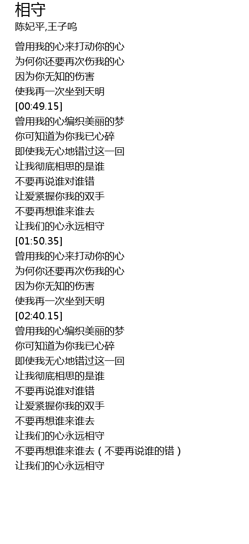 | [03:35.67] | ràng wǒ men de xīn yǒng yuǎn xiāng shǒu |