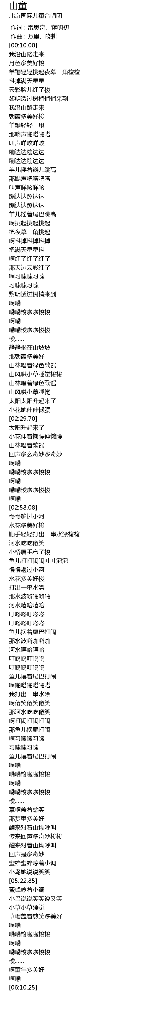 | [00:00.000] | 作词 : 雷思奇、蒋明初 |