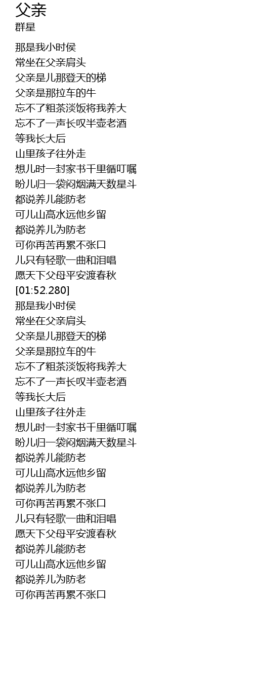 | [02:22.230] | 父亲是那拉车的牛 |