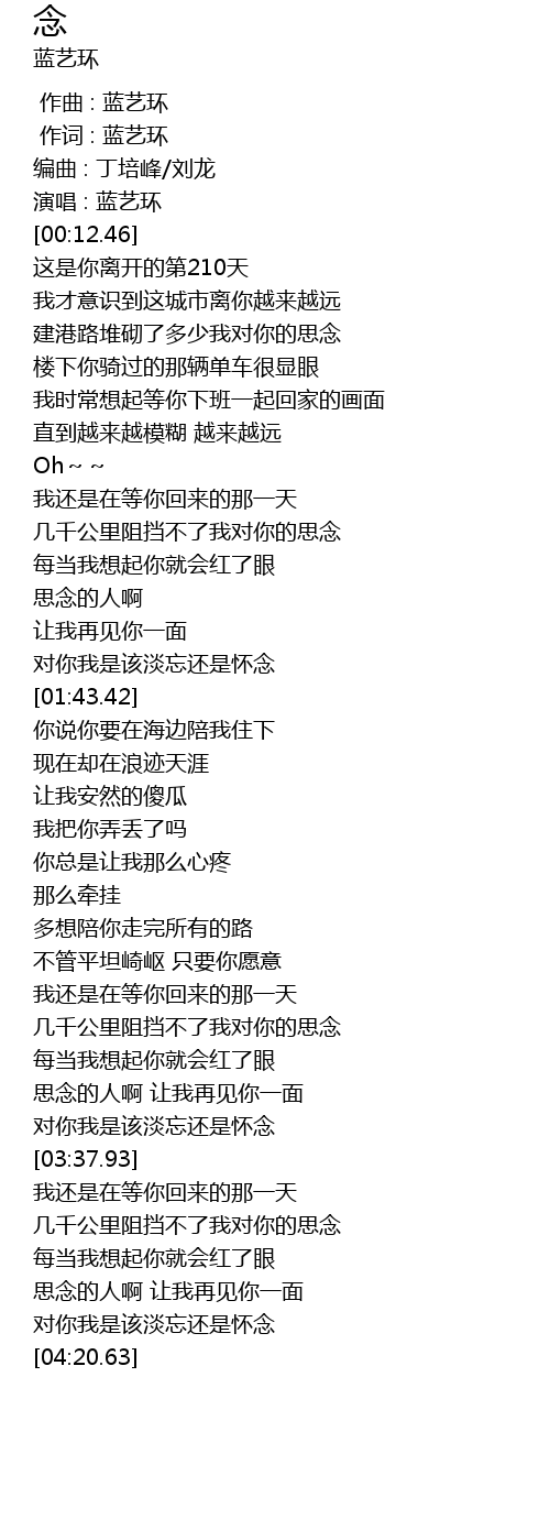 | [00:15.54] | 这是你离开的第210天 |