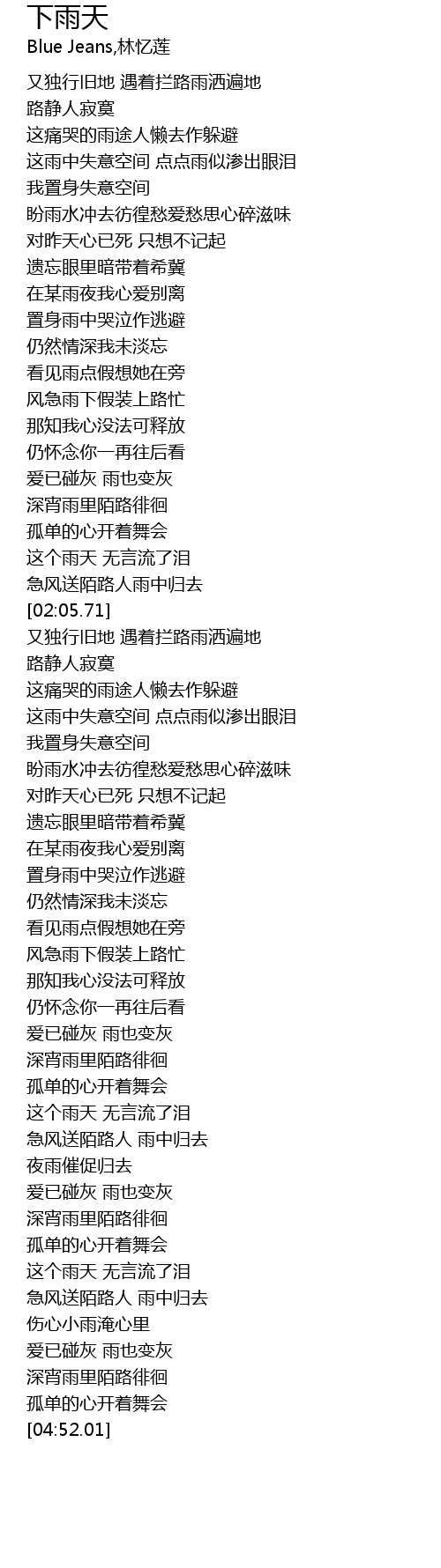 | [01:48.44] | 这个雨天 无言流了泪 |