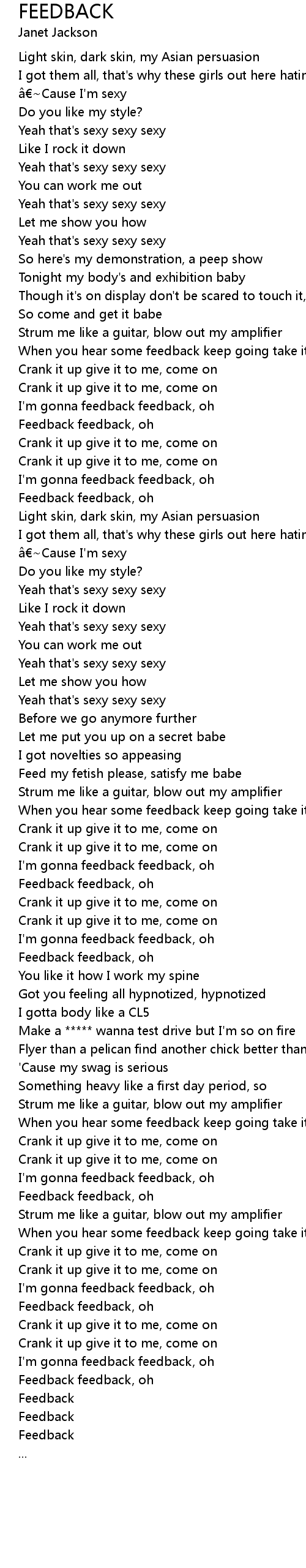 | I' m gonna feedback feedback, oh | |