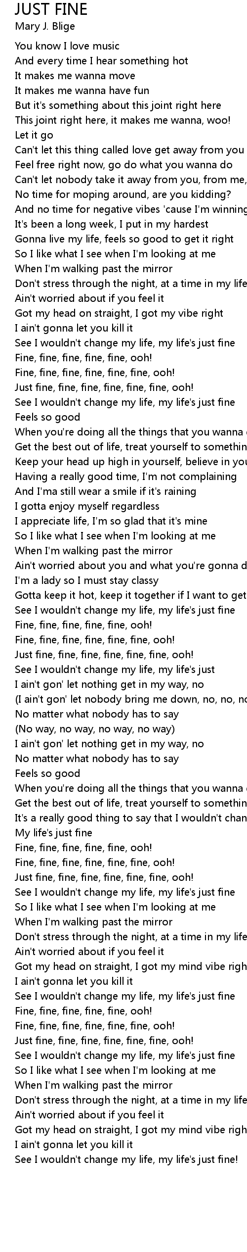 Just fine, fine, fine, fine, fine, fine, ooh! |