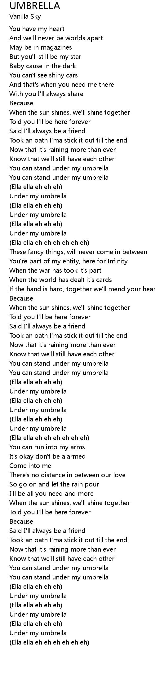 Under my umbrella |
