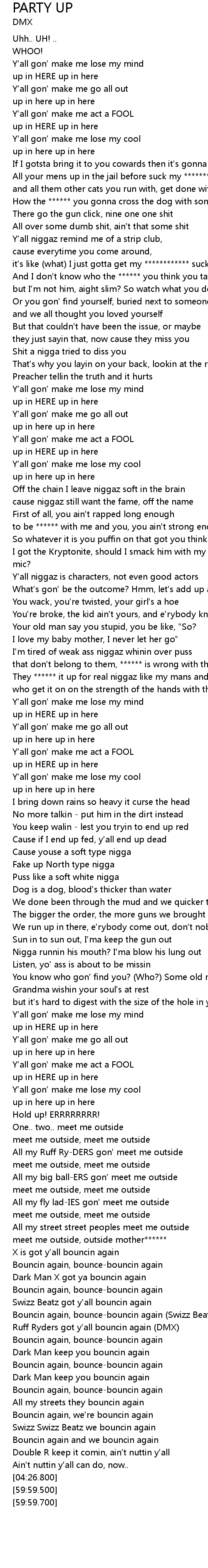 | [03:57.379] | Ruff Ryders got y all bouncin again DMX |