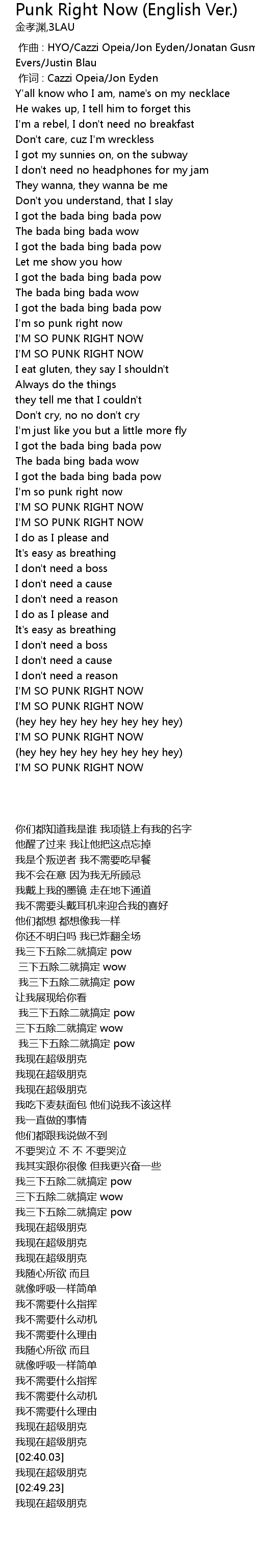 | [01:43.33] | I'M SO PUNK RIGHT NOW |