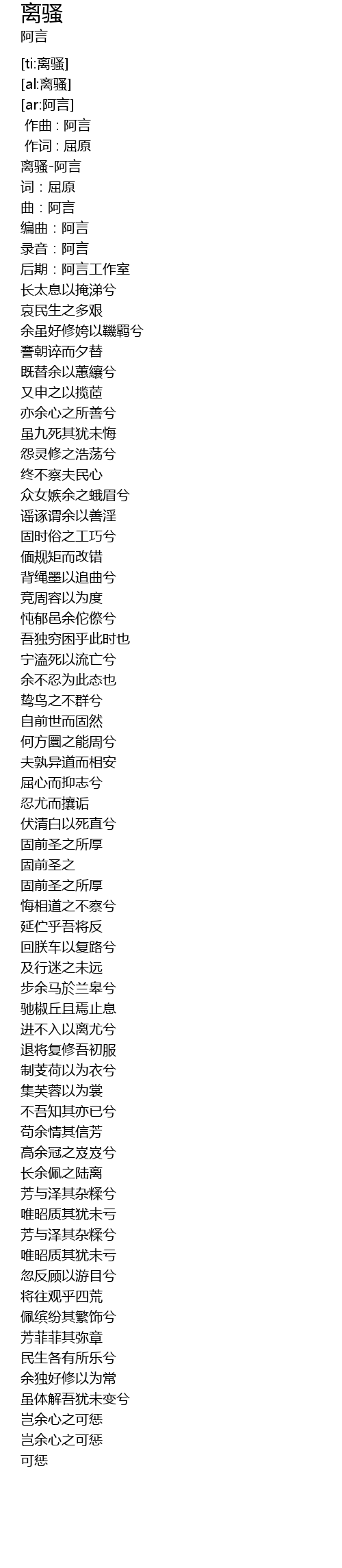 | [00:00.00] | 离骚-阿言 |
