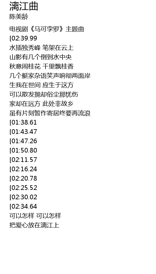 | [04:10.17] | 把爱心放在漓江上 |