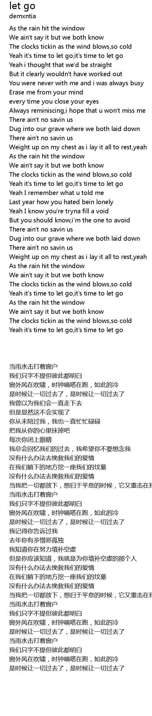 | [00:20.37] | Yeah it's time to let go,it's time to let go |