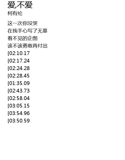 | [01:57.59][03:54.96] | 柯有伦-爱,不爱 |