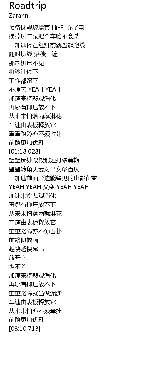 | [00:15.564] | 一加速停在红灯前就当起跑线 |