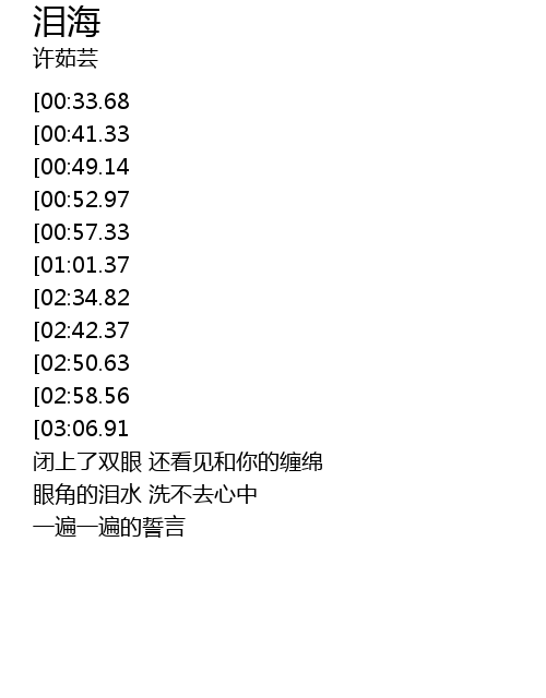 | [03:35.07][02:34.82][01:07.05] | 你怎麽舍得让我的泪流向海 |