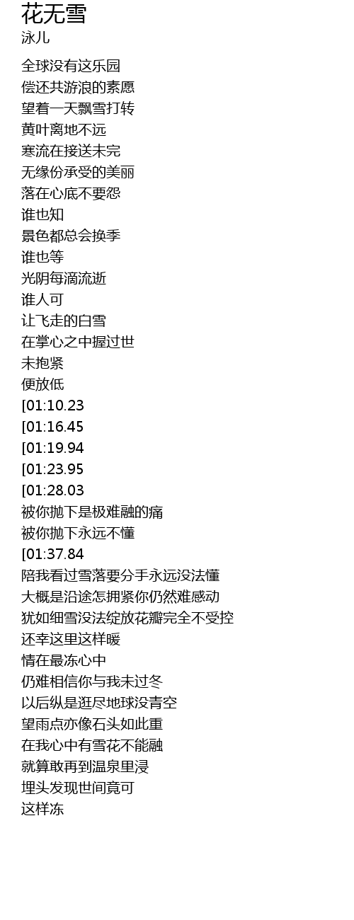 | [02:43.11][01:37.84] | 面对花开似雪一般冰冻 |