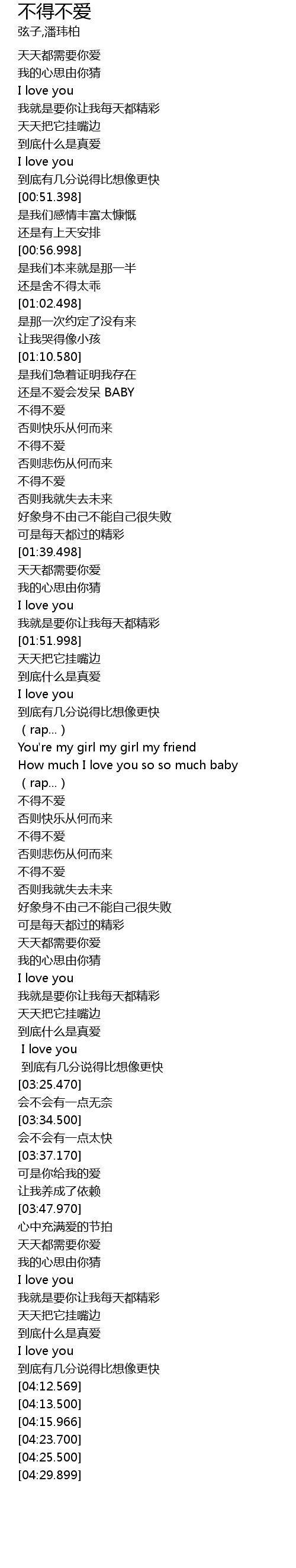 | [03:04.978] | tiān tiān dū xū yào nǐ ài |