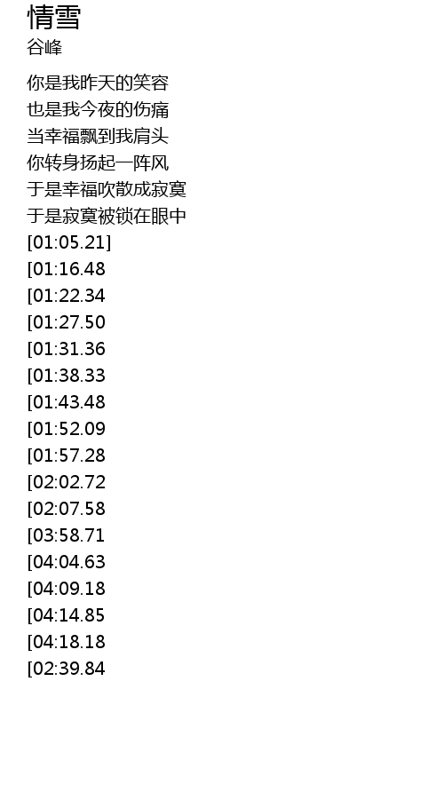 | [04:32.00][04:04.63][02:18.65] | 堆积我心头的积雪 |
