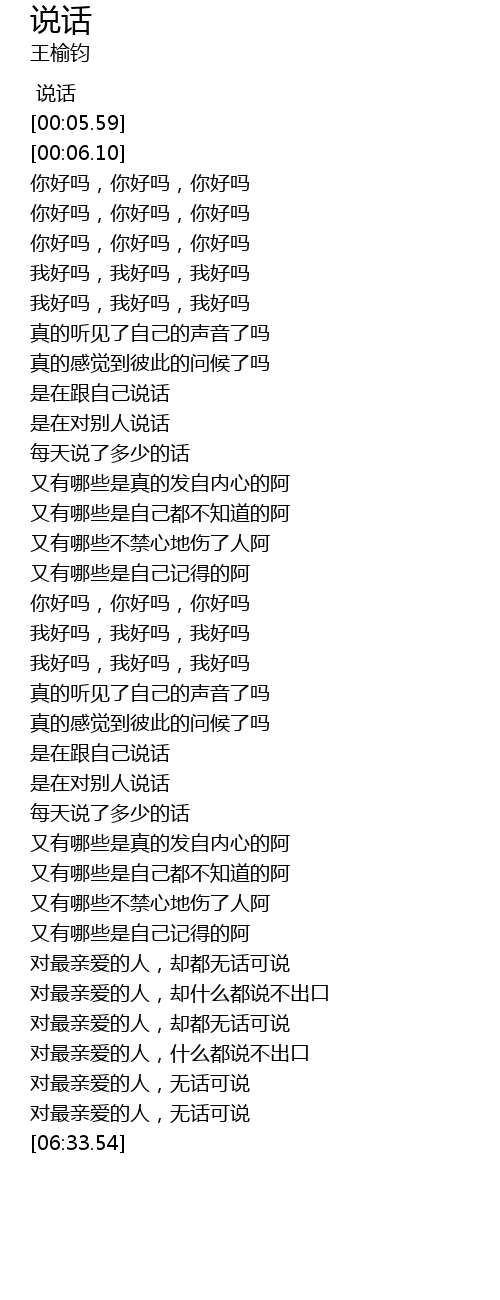 | [06:22.21] | 对最亲爱的人,无话可说 |