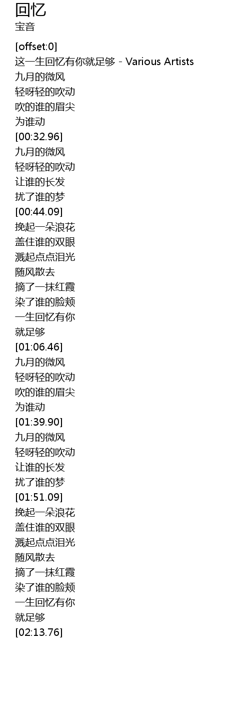 | [02:08.46] | 一生回忆有你 |
