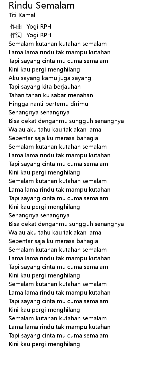 | [03:42.87] | Lama lama rindu tak mampu kutahan |