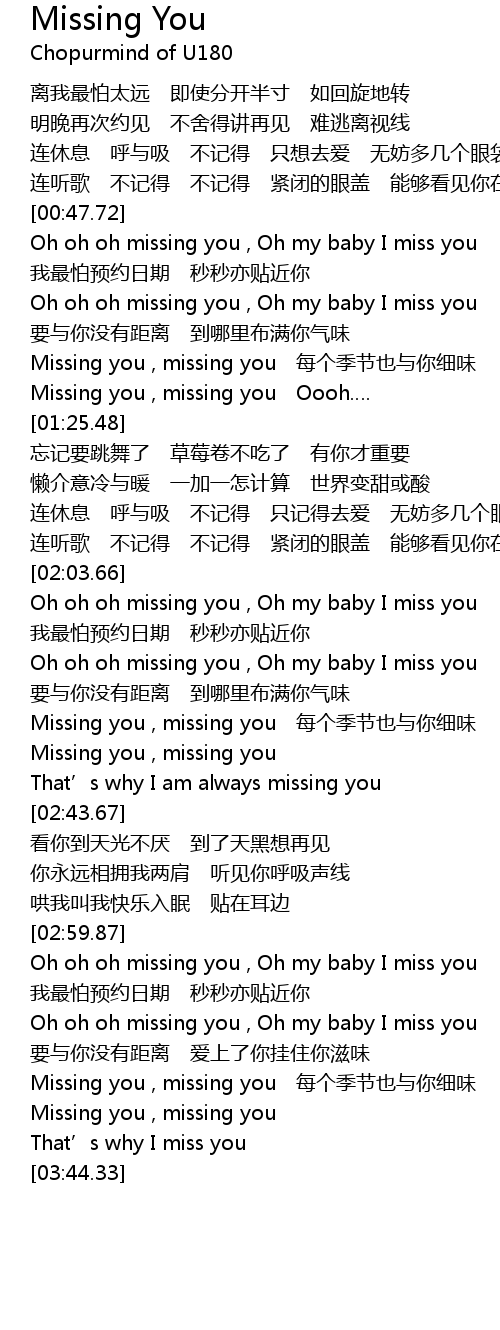 | [03:31.43] | Missing you , missing you |