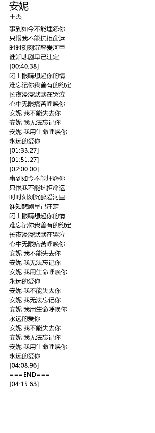 | [03:57.43] | 安妮 我用生命呼唤你 |