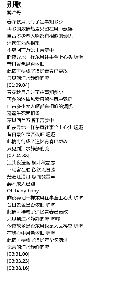 | [01:38.54] | 昨夜异地一样东风往事全上心头 喔喔 |