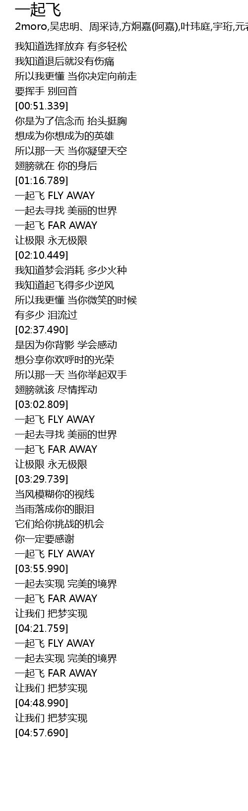 | [03:03.539] | yì qǐ fēi FLY AWAY |