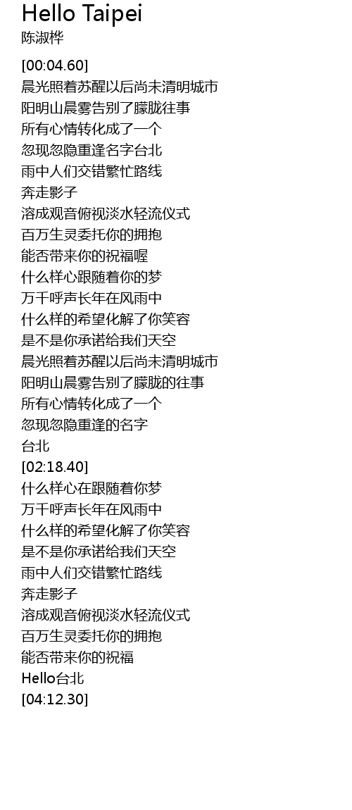 | [00:35.71] | 忽现忽隐重逢名字台北 |