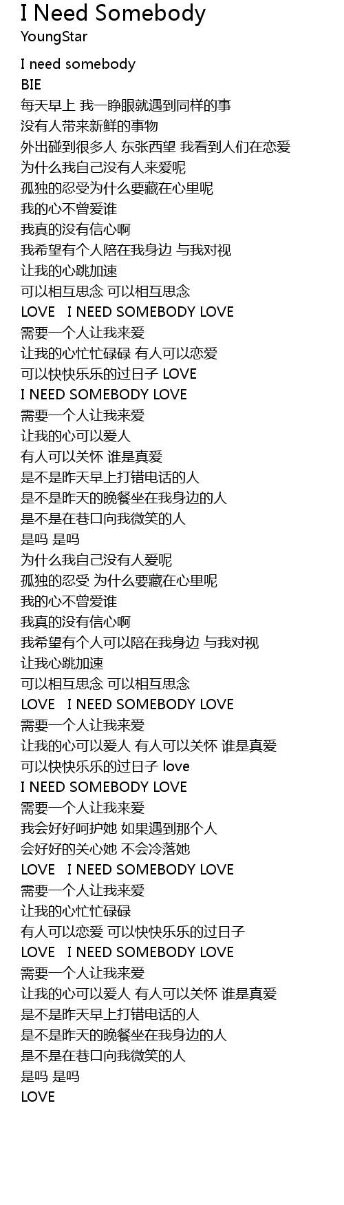 | [00:58.97] | LOVE I NEED SOMEBODY LOVE |