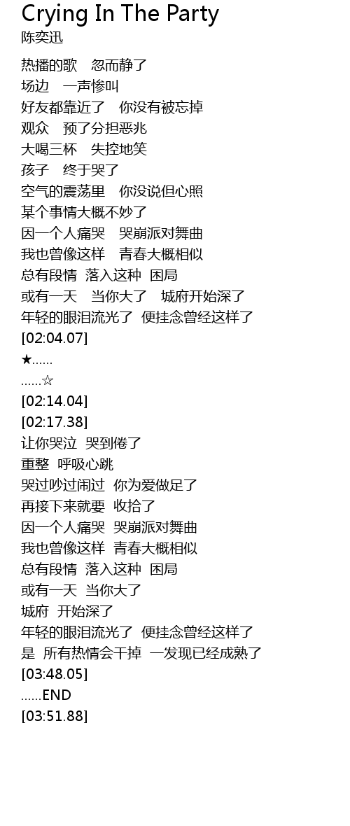 | [02:44.62] | 因一个人痛哭 哭崩派对舞曲 |