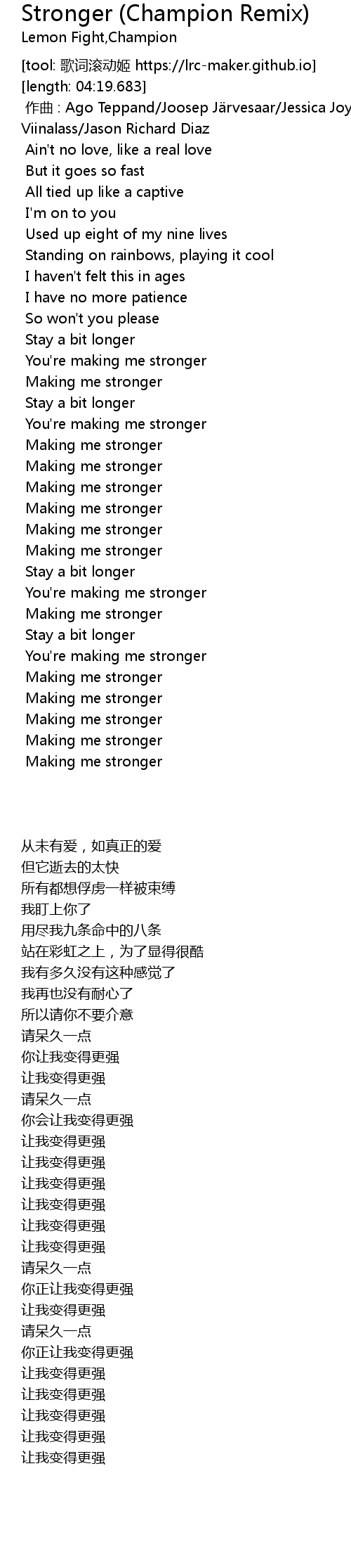 | [00:30.528] | You're making me stronger |