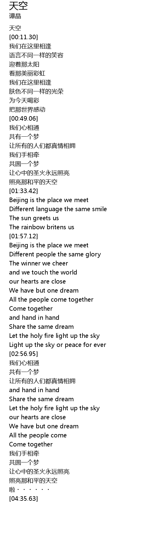 | [04:18.49] | zhao liang na he ping de tian kong |