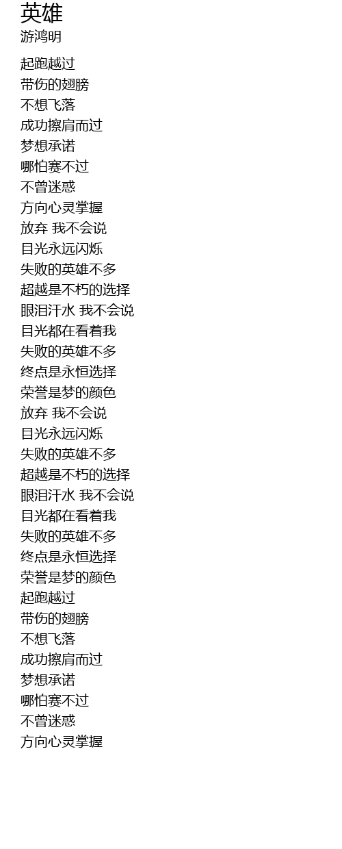 | [01:32.99] | 失败的英雄不多 |