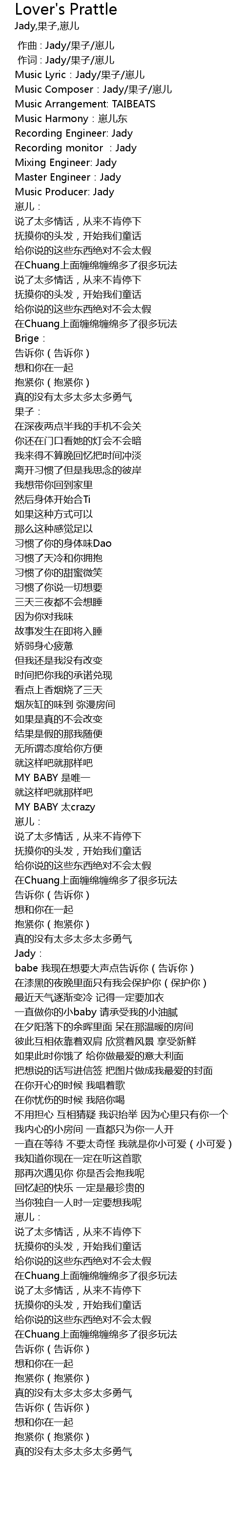 | [02:23.41] | 一直做你的小baby 请承受我的小油腻 |