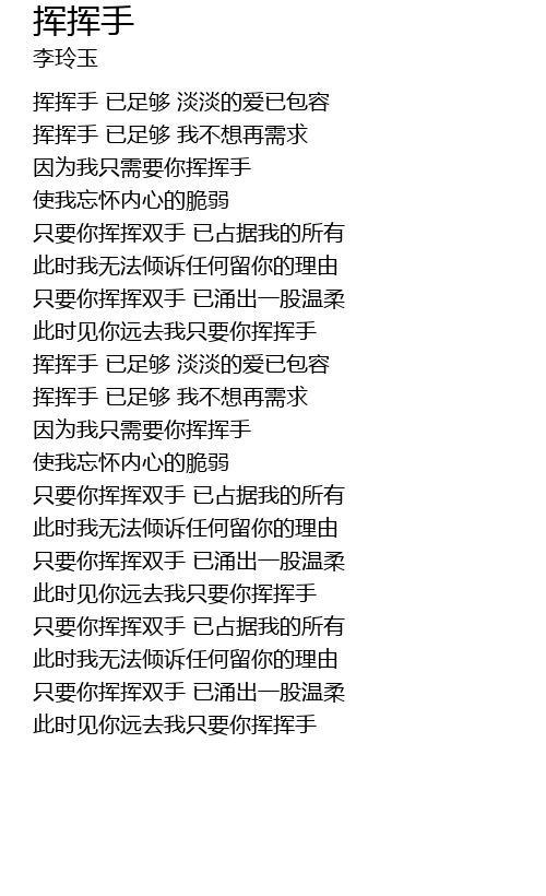 | [00:43.57] | 挥挥手 已足够 我不想再需求 |