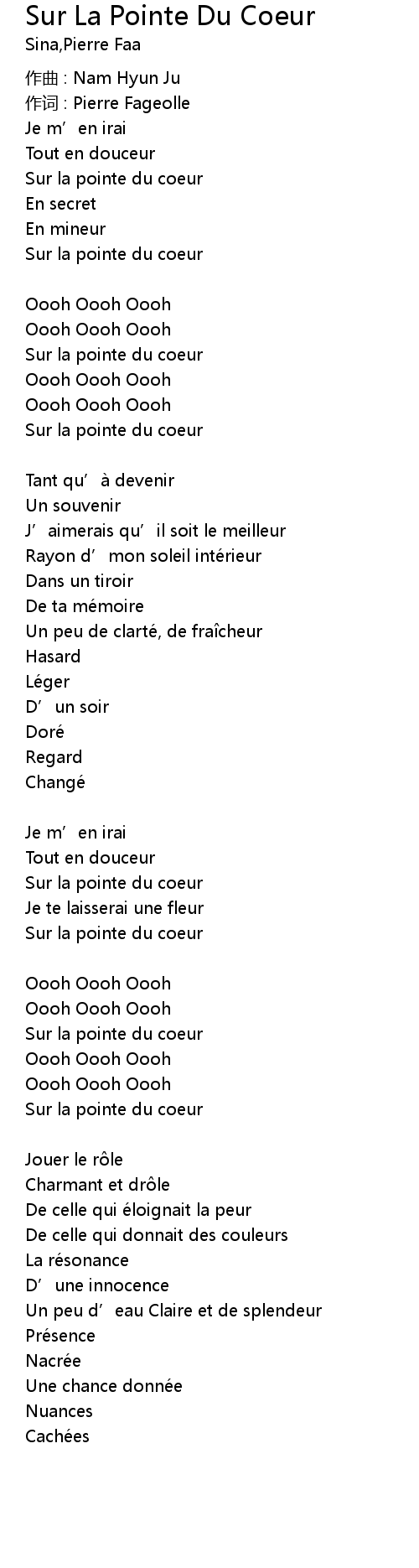 | 作词 : Pierre Fageolle | |