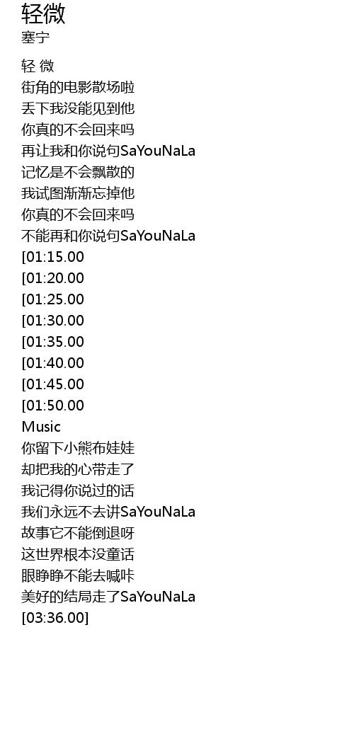 | [02:25.00] | 我们永远不去讲SaYouNaLa |