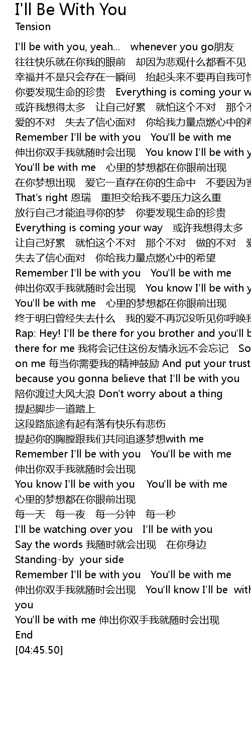 | [04:21.64] | Remember I' ll be with you You' ll be with me |