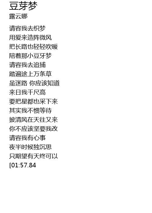 | [00:36.41] | pei zhe na xiao dou ya meng |