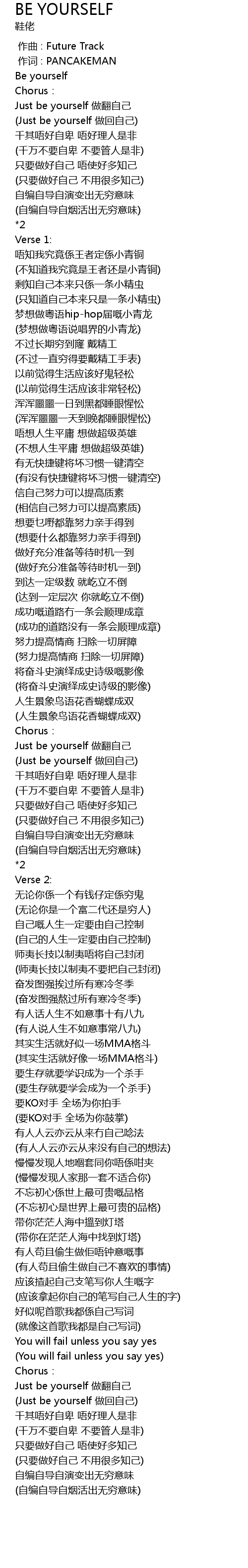 | [02:22.637] | Just be yourself 做翻自己 |