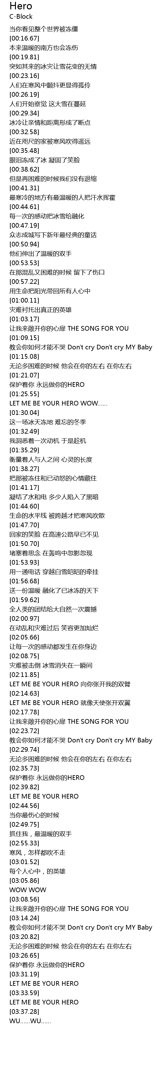 | [02:36.13] | 保护着你 永远做你的HERO |