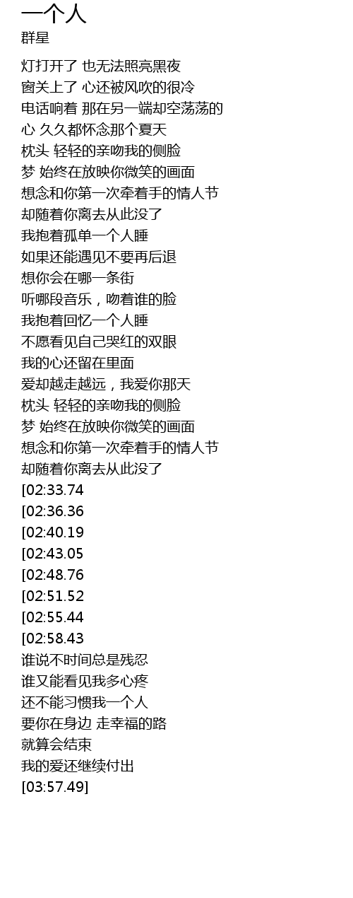 | [03:42.20][02:48.76] | 我抱着回忆一个人睡 |