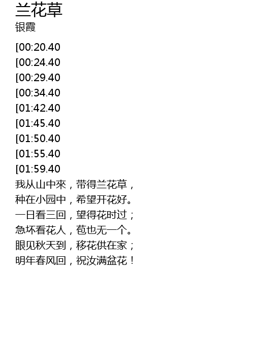 | [01:36.40][00:34.40] | 兰花却依然,苞也无一个。 |